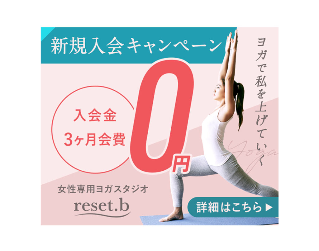 女性専用ヨガスタジオ「reset.b」新規入会キャンペーンバナー(サンプル)を制作しました。 制作期間 約3時間 制作環境 Illustrator、Photoshop 店舗情報 「reset.b」東京を中心に3店舗展開している女性専用ヨガスタジオ ペルソナ ターゲット:20代〜30代 ... -