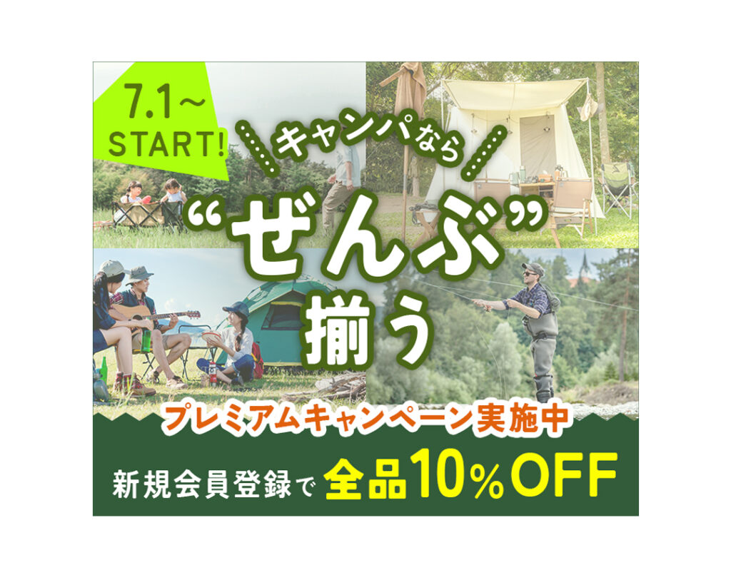 キャンプ用品店 新規会員登録キャンペーンバナー